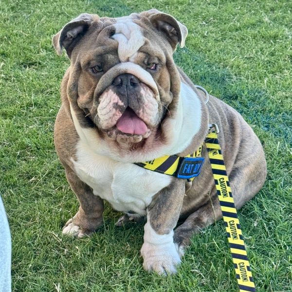 He is built solid and low to the ground. Coming in at a solid 75lbs
