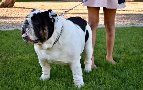 English Bulldog stud services may cause nausea, mood change, sensitive nipples, swelling in the stomach region, increased appetite, tired feeling and labor pains, can cause whelping after 63 days.